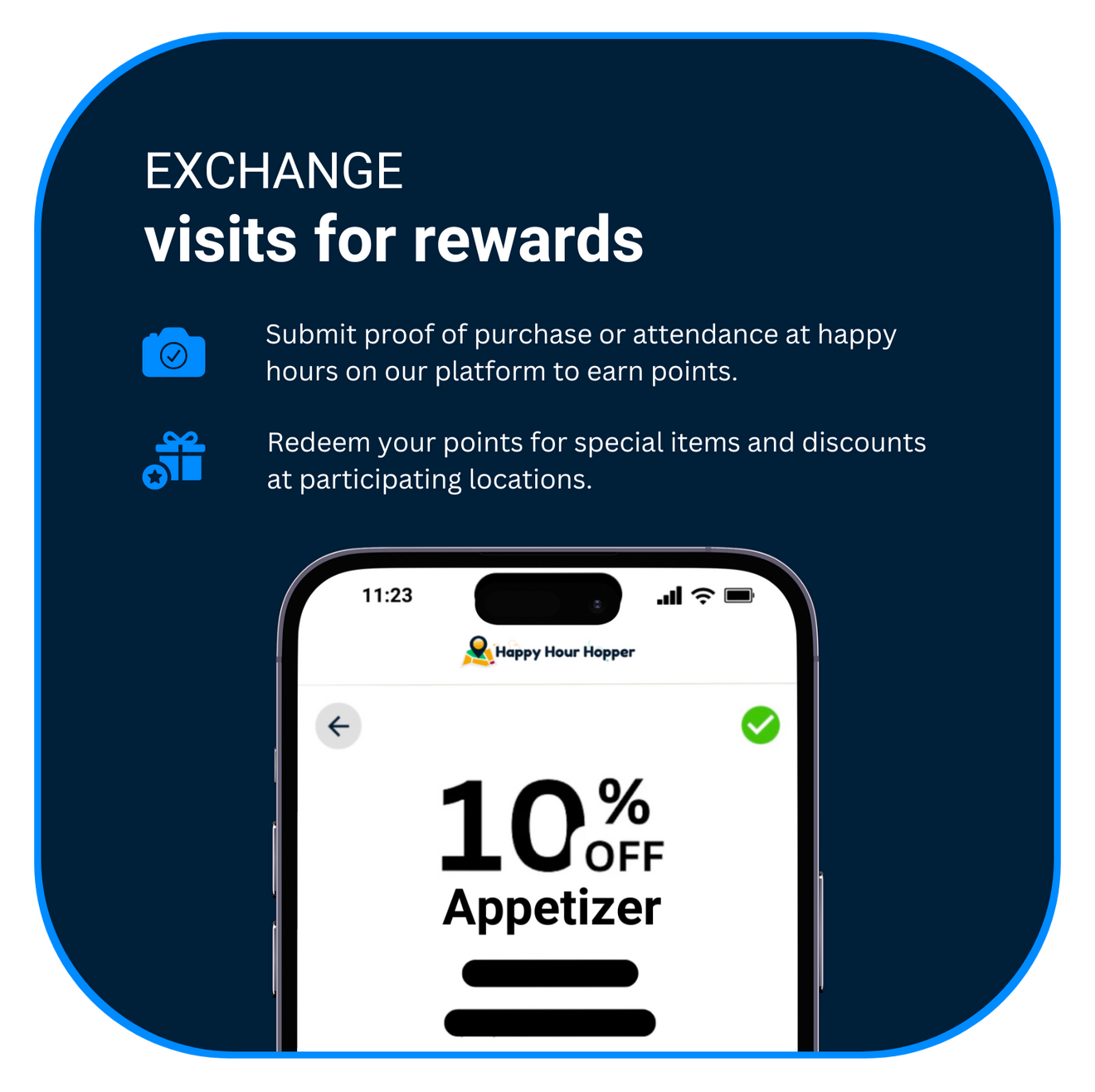 Influencers are encouraged to use their social media platforms and local influence to promote Happy Hour Hopper. We support these efforts with promotional materials and strategic guidance to maximize reach and effectiveness.